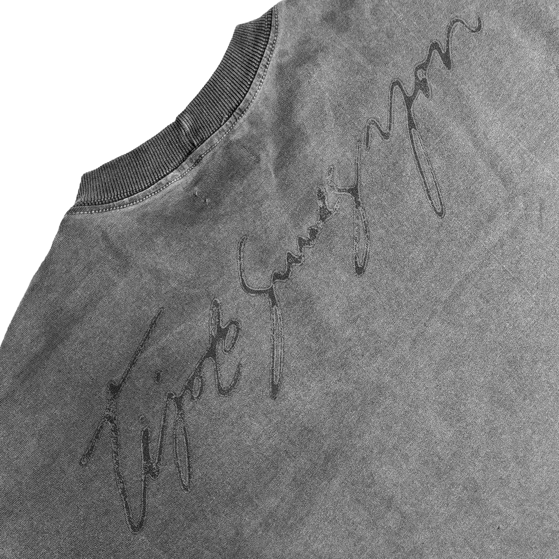 100% cotton T-shirt with ribbed crewneck, front and back screen print, and stone-washed finish