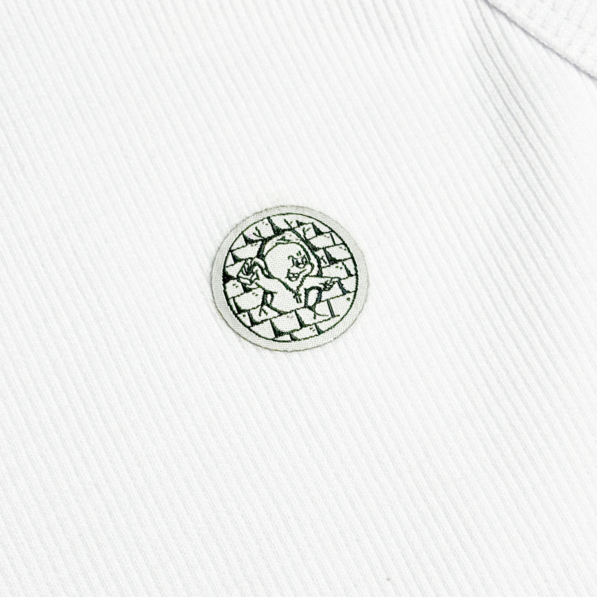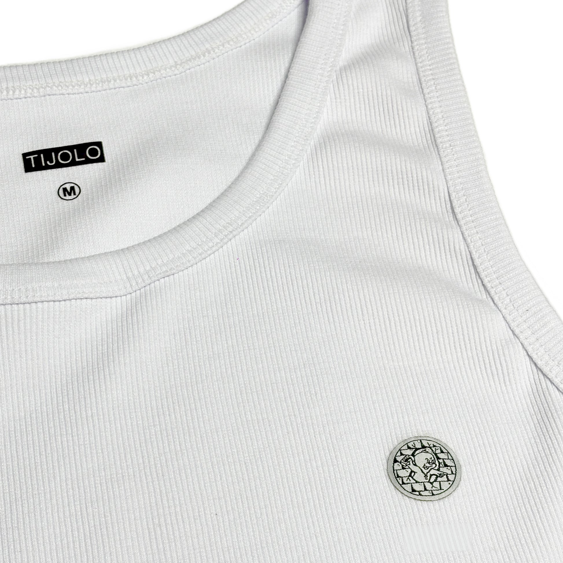 Fitted ribbed T-shirt with heat-sealed Tijolo patch applied on the left side